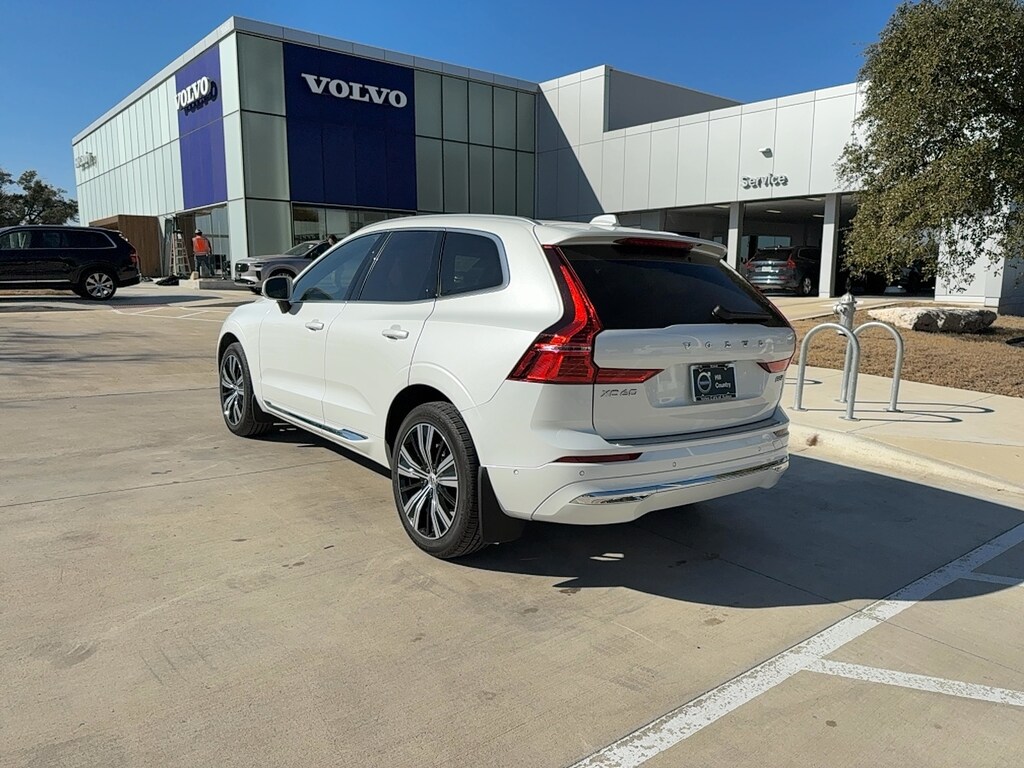 23/29 City/Highway MPG CARFAX One-Owner Crystal White Metallic 2023 Volvo XC60 B5 Plus Bright Theme AWD 2.0L Turbo I4 247hp 258ft. lbs. 20 Inch 5-Multi-Spoke Black Diamond Cut Alloy Wheels, Air Quality With Advanced Air Cleaner, Climate Package, Climate Pro Package, Front and Rear Mud Flaps, Harman Kardon Premium Sound System, Luggage Compartment Cover, Power Operated Tailgate, Stainless Steel Bumper Cover 10 Driver Seat Power Adjustments, 10 Passenger Seat Power Adjustments, 10 Total Speakers, 12.3 In. Instrument Cluster Screen Size, 12V Front Power Outlet(s), 180 Amps Alternator, 2 Driver Memorized Settings, 2 Front Headrests, 2.0L Turbo I4 247hp 258ft. lbs., 20 INCH 5-MULTI-SPOKE BLACK DIAMOND CUT ALLOY WHEELS, 220 Watts, 3 Rear Headrests, 3-point Front Seatbelts, 3-point Rear Seatbelts, 4 One-touch Windows, 4-wheel ABS, 5 Wheel Spokes, 60-40 Split Bench Rear Seat Type, 8-Speed Shiftable Automatic, 800 CCA Battery Rating, 9 In. Infotainment Screen Size, Accessory Hook Storage, Acoustic Windshield Laminated Glass, Active Charcoal Air Filtration, Adaptive Cruise Control, AIR QUALITY WITH ADVANCED AIR CLEANER, Alarm Anti-theft System, Alloy Shift Knob Trim, Alloy Steering Wheel Trim, Aluminum Door Sill Trim, Aluminum Roof Rails, Ambient Lighting, Android Auto Smartphone Integration, Android Automotive Infotainment, Anti-tow Sensor Anti-theft System, Anti-trapping Moonroof / Sunroof, App Marketplace Integration Connected In-car Apps, Apple CarPlay Smartphone Integration, Approach Lamps Exterior Entry Lights, Audible Warning Pre-collision Warning System, Audio Steering Wheel Mounted Controls, Auto Delay Off Headlights, Auto High Beam Dimmer Headlights, Auto Off Electronic Parking Brake, Auto On/off Headlights, Auto Start/stop, Auto-dimming Rearview Mirror, Auto-dimming Side Mirrors, Auto-locking Power Door Locks, Auto-off Rear Fog Lights, Automatic Climate Control Front Air Conditioning, Automatic Hazard Warning Lights, AWD, Battery Saver, Bluetooth Auxiliary Audio Input, Bluetooth Wireless Data Link, Body-color Door Handle Color, Body-color Fender Lip Moldings, Body-color Front Bumper Color, Body-color Mirror Color, Body-color Rear Bumper Color, Body-color Rear Spoiler Color, Body-color Rocker Panel Color, Braking Assist, Bucket Front Seat Type, Capless Fuel Filler System, Cargo Area Light, Carpet Floor Mat Material, Carpet Floor Material, Center Locking Differential, Child Safety Door Locks, Chrome Body Side Moldings, Chrome Grille Color, Chrome Window Trim, CLIMATE PACKAGE, CLIMATE PRO PACKAGE, Clock, Coil Front Spring Type, Compass, Coolant Temperature Warning Warnings And Reminders, Cooled Compartment Storage, Cornering Brake Control, Cornering Front Fog Lights, Cornering Headlights, Cruise Control Steering Wheel Mounted Controls, Customizable Instrument Cluster, Digital Odometer, Diversity Antenna Type, Door Courtesy Lights, Door Pockets Storage, Door Unlock Impact Sensor, Double Wishbone Front Suspension Type, Drive Mode Selector, Driver Attention Alert System, Driver Knee Airbags, Driver Seat Memorized Settings, Dual Front Air Conditioning Zones, Dual Front Airbags, Dual Front Impact Absorbing Seats, Dual Illuminating Vanity Mirrors, Electronic Brakeforce Distribution, Emergency Braking Preparation, Engine Start Smart Device App Function, External Temperature Display, Fixed Liftgate Window, Flat Rear Seat Folding, FM Radio, Foldable Rear Headrests, Footwell Lights, FRONT AND REAR MUD FLAPS, Front Assist Handle, Front Automatic Emergency Braking, Front Console With Armrest And Storage Center Console, Front Crumple Zones, Front Cupholders, Front Emergency Locking Retractors, Front Floor Mats, Front Overhead Console, Front Parking Sensors, Front Pedestrian Automatic Emergency Braking, Front Reading Lights, Front Seatback Storage, Front Seatbelt Force Limiters, Front Seatbelt Pretensioners, Front Seatbelt Warning Sensor, Front Side Airbags, Front Side Curtain Airbags, Front Stabilizer Bar, Front Struts, Gas Front Shock Type, Gas Rear Shock Type, Glass Breakage Sensor Anti-theft System, Google Assistant Connected In-car Apps, Google Assistant Smart Device App Compatibility, Google Built-In Infotainment, Google POIs Connected In-car Apps, Google Search Connected In-car Apps, Hard Drive, HARMAN KARDON PREMIUM SOUND SYSTEM, Head-on Collision Avoidance Evasive Steering Assist, Heated Driver Seat, Heated Passenger Seat, Heated Side Mirrors, Height Driver Seat Power Adjustments, Height Passenger Seat Power Adjustments, Hidden Exhaust, Hill Descent Off-road Driving Assist, Hill Holder Control, Homelink - Garage Door Opener Universal Remote Transmitter, Hotspot Compatible Wi-Fi, Humidity/dewpoint Sensors, IHeartRadio Internet Radio App, Illuminated Cupholders, In Dash Rearview Monitor, In Dash Storage, In Floor Storage, In Seat Cushion Storage, Independent Front Suspension Classification, Independent Rear Suspension Classification, Inside Spare Tire Mount Location, Integrated Front Headrests, Integrated Turn Signals Side Mirrors, Integrated Washer Jets Front Wipers, Interior Motion Sensor Anti-theft System, IPod/iPhone Auxiliary Audio Input, Lamp Failure Warnings And Reminders, Lane Centering Autonomous Lane Guidance, Lane Deviation Sensors, Lane Keeping Assist, Lane Keeping Assist With Blind Spot Integration, LATCH System Child Seat Anchors, Leaf Rear Spring Type, Leather Upholstery, Leatherette Center Console Trim, Leatherette Dash Trim, Leatherette Door Trim, LED Daytime Running Lights, LED Front Fog Lights, LED Headlights, LED Taillights, Liftgate Memorized Settings, Liftgate Rear Trunk/liftgate, Lock Operation Smart Device App Function, Lockout Button Power Windows, Low Fuel Level Warnings And Reminders, Low Oil Pressure Warnings And Reminders, Low Washer Fluid Warnings And Reminders, LUGGAGE COMPARTMENT COVER, Lumbar Driver Seat Power Adjustments, Lumbar Passenger Seat Power Adjustments, Maintenance Due Warnings And Reminders, Maintenance Status Smart Device App Function, Maintenance-free