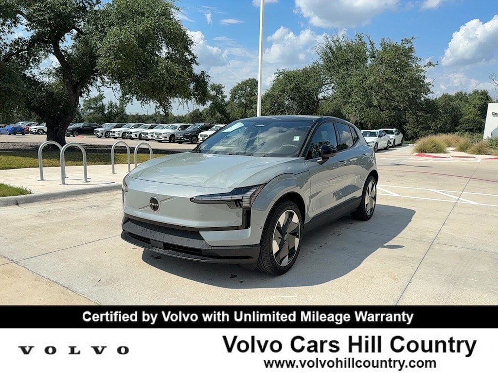 Experience the future of driving with this low-mileage 2025 Volvo EX30 eAWD Twin Ultra SUV in sophisticated gray, boasting just 1,377 miles. Powered by a robust 69 kWh battery and dual electric motors (422hp, 400ft. lbs.), enjoy up to 250 miles per charge and lightning-fast DC fast charging. The Ultra trim surrounds you with luxury and innovation: Google Built-In infotainment with wireless Apple CarPlay, a 12.3-inch touchscreen, Harman/Kardon 1040W premium audio, and over-the-air navigation updates. Stay comfortable with the Climate Package, heated and power-adjustable seats, and a fixed glass moonroof. Drive with confidence thanks to advanced safety features like Head-on Collision Avoidance, Lane Keeping Assist with Blind Spot Integration, Semi-automatic Adaptive Cruise Control, and a surround view camera system. Smart device app compatibility includes phone-as-key and remote charging controls. Convenience abounds with power folding mirrors, hands-free power liftgate, and plenty of USB-C outlets. Don't miss your chance to own this nearly-new, fully loaded electric SUV-visit us today for a test drive!