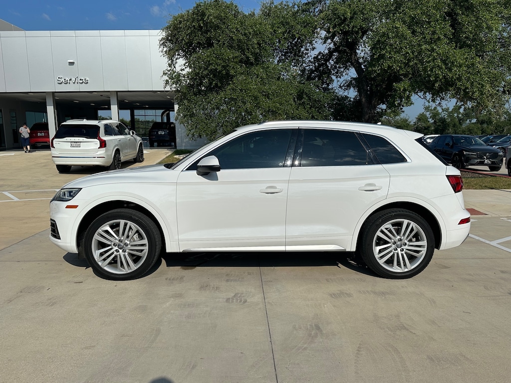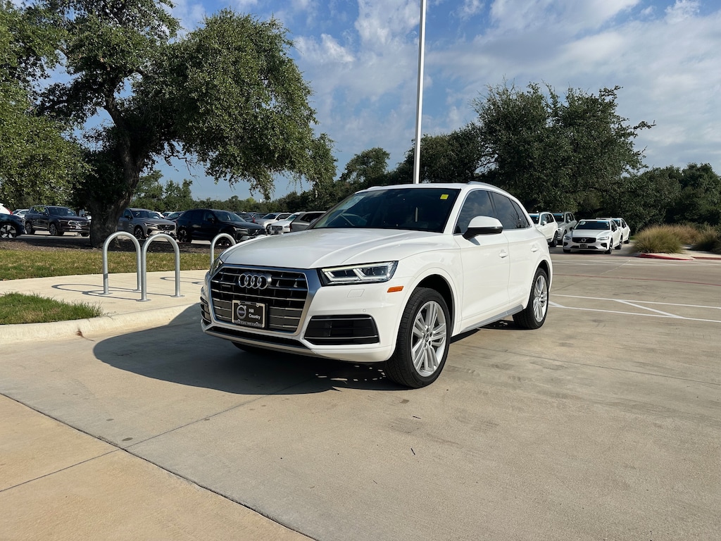 Discover sophistication and performance with this White 2019 Audi Q5 AWD 2.0T quattro Premium Plus SUV. Enjoy the confidence of Audi's legendary all-wheel drive and a turbocharged 2.0L engine paired with a 7-speed double clutch transmission for a smooth, responsive ride. The Premium Plus trim offers luxury features including leather upholstery, power panoramic moonroof, and heated front seats. Stay connected with Apple CarPlay, Android Auto, and Audi MMI Connect infotainment displayed on an 8.3-inch screen. Safety is paramount with front and rear automatic emergency braking, blind spot monitoring, rear cross traffic alert, and a rearview camera. Additional highlights include a sensor-activated power liftgate, customizable digital instrument cluster, ambient lighting, and aluminum alloy wheels. With advanced technology like voice-operated navigation, Bluetooth wireless data link, and Wi-Fi hotspot capability, this Audi Q5 is designed for comfort, convenience, and peace of mind.