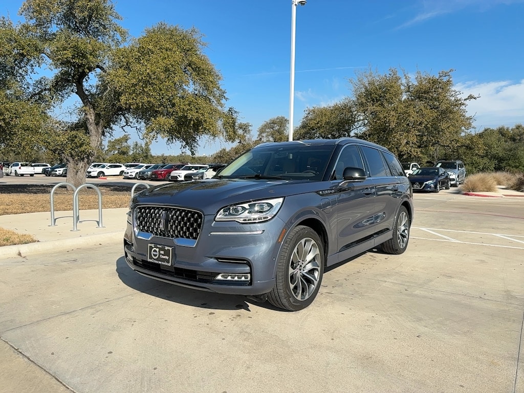Experience refined luxury and advanced technology with this Dark Blue 2021 Lincoln Aviator AWD Grand Touring SUV. Powered by a robust 3.0L Plug-in Hybrid Twin Turbo V6 and AWD, this Aviator delivers exceptional performance and efficiency. Enjoy premium features like the Dynamic Handling Package, Revel premium audio, and plush premium leather upholstery. Stay connected and in control with a 12.3-inch customizable digital instrument cluster, 10.1-inch touchscreen with SYNC infotainment, Amazon Alexa, Apple CarPlay, and Android Auto. The panoramic sunroof, surround view camera, lane keeping assist, adaptive suspension, and Lincoln Co-Pilot360 Plus safety suite ensure every journey is comfortable and secure. With advanced driver assistance, power-folding third-row seating, and a sensor-activated power liftgate, this luxury SUV adapts effortlessly to your lifestyle. Make a statement and drive with confidence in this feature-packed Aviator Grand Touring.