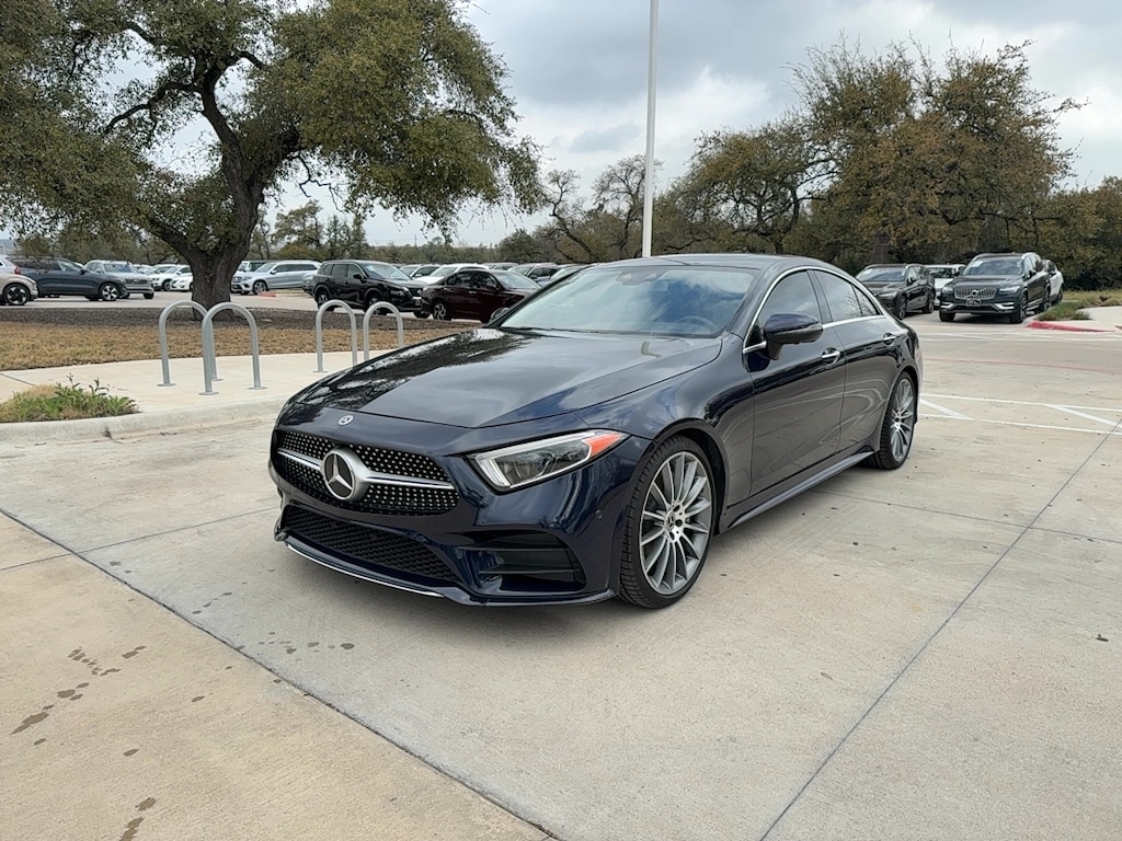 Experience luxury and performance in this stunning dark blue 2019 Mercedes-Benz CLS 450 Coupe. Powered by a 3.0L turbocharged I6 engine with a mild hybrid system and a smooth 9-speed automatic transmission, this CLS 450 delivers dynamic handling with rear-wheel drive. Enjoy the bold look of 20-inch AMG multi-spoke wheels and the comfort of heated and ventilated front seats wrapped in leather upholstery. The Premium Package adds top-tier features like a Burmester Surround Sound System, 12.3-inch digital instrument cluster, head-up display, and Parking Assist Package for effortless maneuvering. Stay connected with Apple CarPlay, Android Auto, and Mercedes Me app compatibility. Other highlights include a panoramic sunroof, active suspension, power rear sunshade, ambient lighting, and advanced safety features like pre-collision warning and crosswind stabilization. Step up to a coupe that blends style, innovation, and driving excitement-schedule your test drive today!
