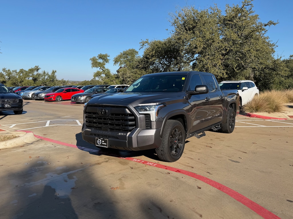 Experience power, comfort, and advanced technology with this dark gray 2022 Toyota Tundra 4x2 SR5 CrewMax. Driven by a robust 3.4L Twin Turbo V6 (389hp, 479 ft. lbs.) and paired with a smooth 10-speed shiftable automatic, this Tundra is ready for work or play. Enjoy smart tech like wireless Apple CarPlay & Android Auto, Amazon Alexa compatibility, an 8-inch touchscreen, Bluetooth, and Wi-Fi hotspot. Stay safe with adaptive cruise control, lane keeping assist, intersection/junction turn pre-collision warning, automatic emergency braking, pedestrian detection, and a rearview camera. Towing is a breeze thanks to the integrated trailer brake controller, receiver hitch, and 7-pin wiring. Comfort features include automatic climate control, push-button start, power sliding rear window, and cloth upholstery. With LED headlights, fog lights, and a power-locking tailgate, this Tundra blends rugged capability with modern convenience. Schedule your test drive today and see why the Tundra SR5 is one of the most versatile pickups on the market.