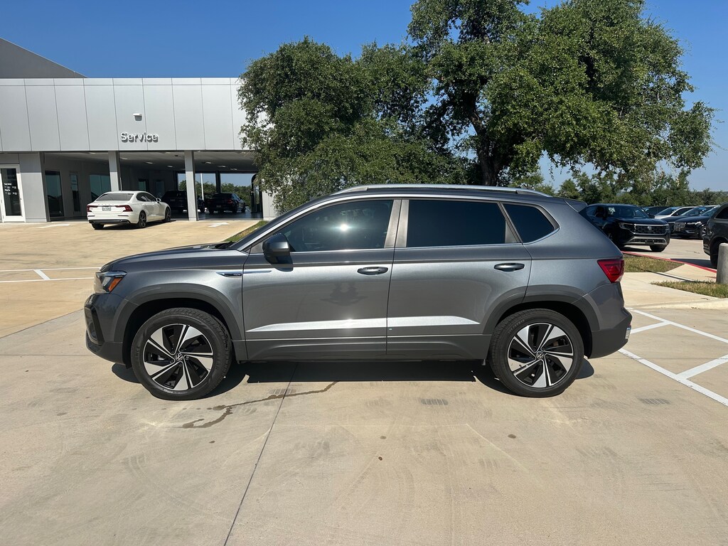 Drive home in style with this gray 2024 Volkswagen Taos SE 4Motion AWD SUV. Built for comfort and performance, it features a 1.5L Turbo engine paired with a 7-speed double clutch transmission for a smooth, responsive ride. Enjoy seamless connectivity with MIB3 Infotainment, wireless Apple CarPlay and Android Auto, plus Amazon Alexa compatibility. Stay safe and confident on the road thanks to advanced driver assistance features such as Front and Rear Automatic Emergency Braking, Lane Keeping Assist with Blind Spot Integration, Adaptive Cruise Control, and Rear Cross Traffic Alert. Comfort is elevated with heated front seats, a leatherette-trimmed steering wheel, and automatic climate control. The power-operated rear liftgate, silver roof rails, and spacious cargo area make it perfect for everyday versatility. With its modern technology, impressive safety features, and all-wheel drive capability, the Taos SE is ready for any adventure.